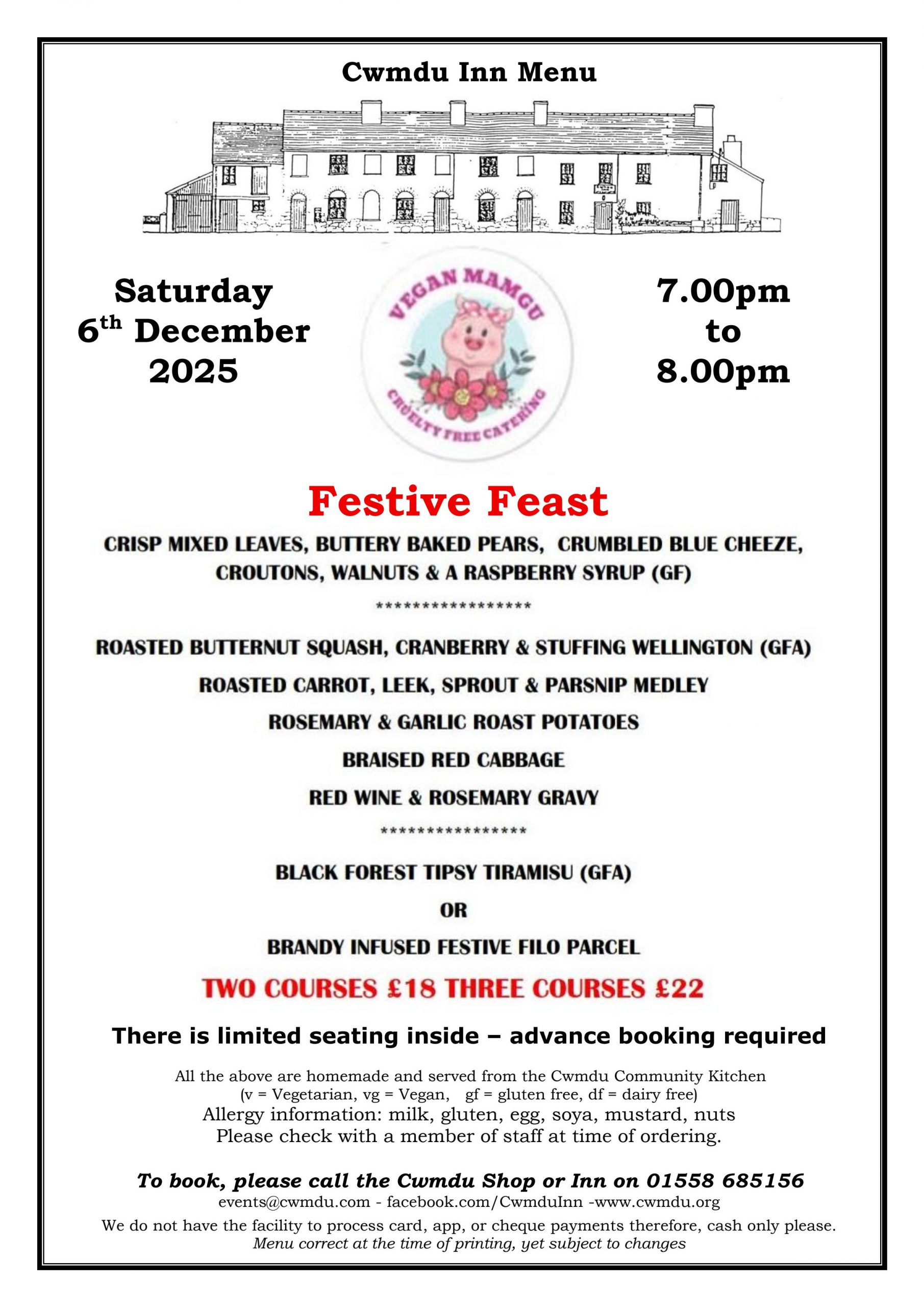 Vegan Mamgu’s menu