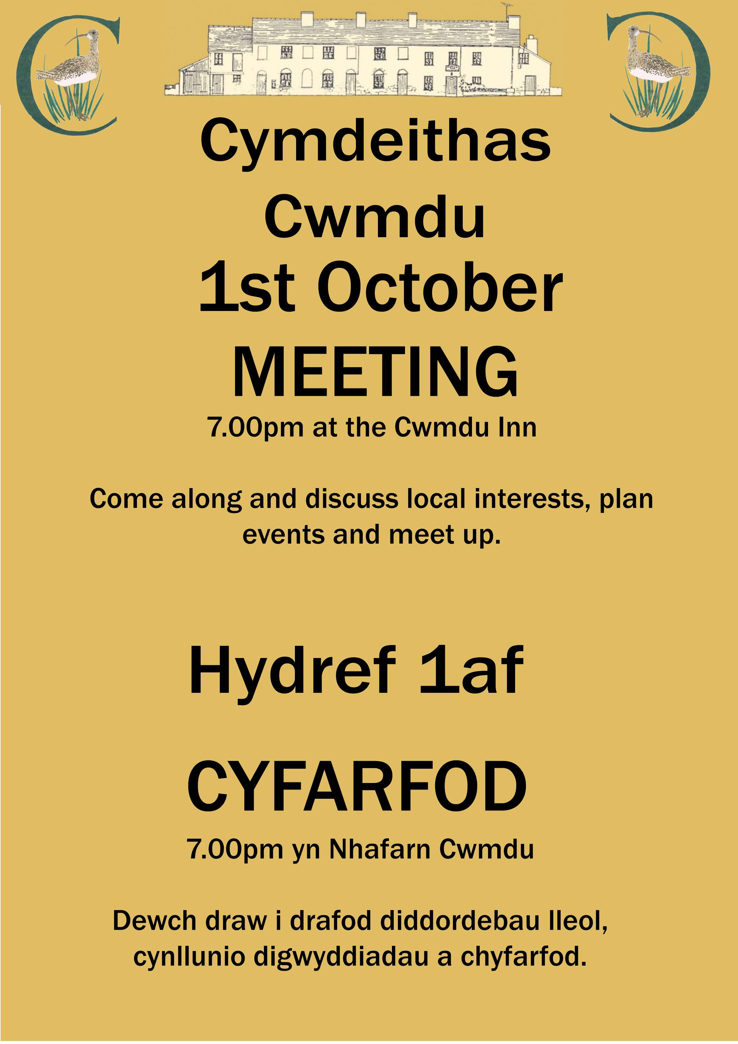 260806-Cymdeithas Cymdeithas Cwmdu Meeting Usually the 1st Thursday of the month, . Discuss local issues, plan events and meet your friends.